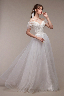 Мягкая диадема МД016 ручной работы со стразами и мелкими цветочками из полимерной глины украсят свадебную прическу любой невесты.