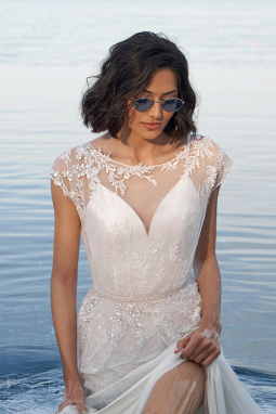 Небольшой шлейф на юбке А-силуэта добавит шика - вы получите прекрасную память на ваших фото и видео со свадьбы.